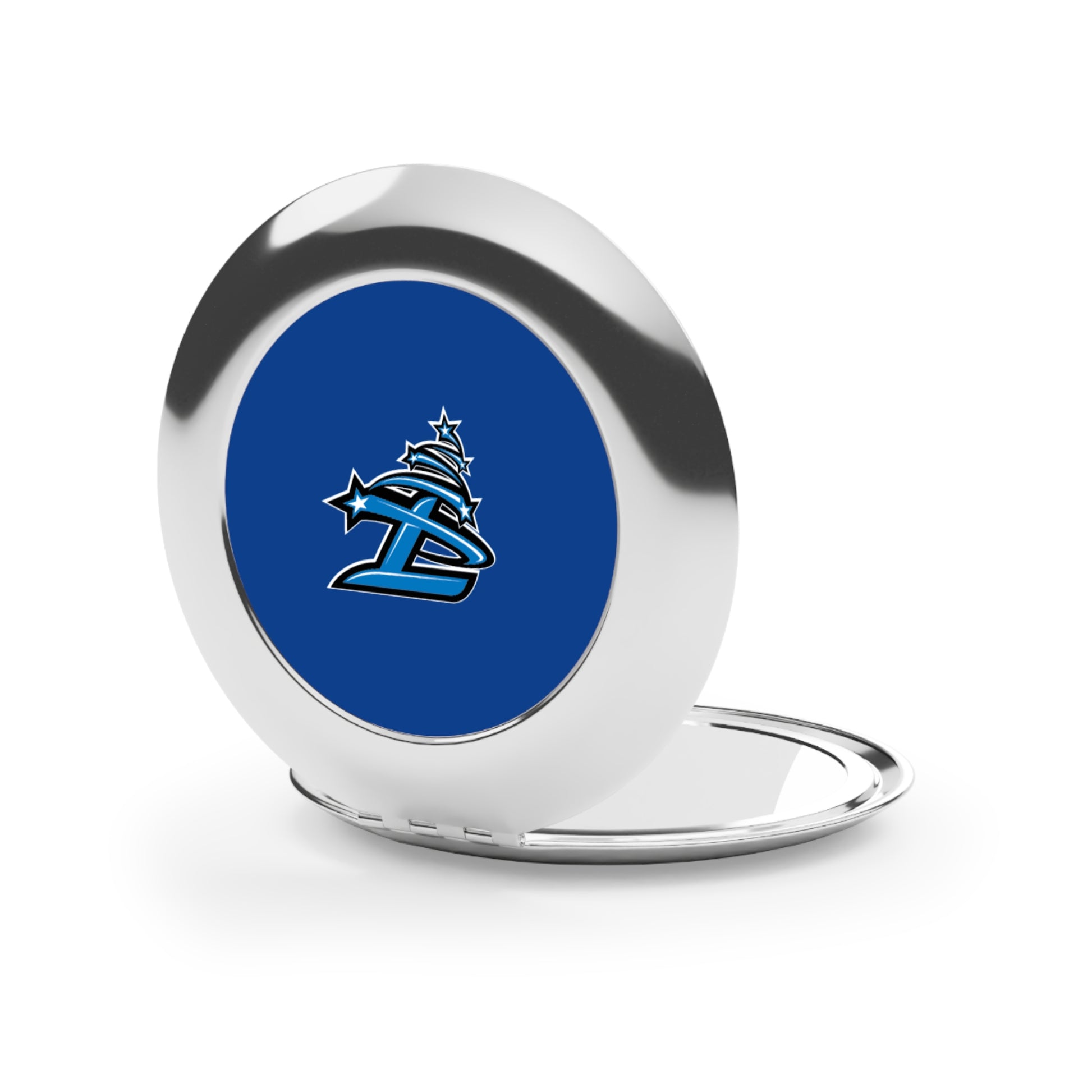 This personalized compact mirror is the perfect makeup gadget for touching up on the go. Made to be travel-friendly, cute, and shiny, it comes with a secure-snap friction closure, a sleek round shape and a metal finish for extra stylish points. Put your designs on the white metal insert and create the perfect travel makeup mirror.